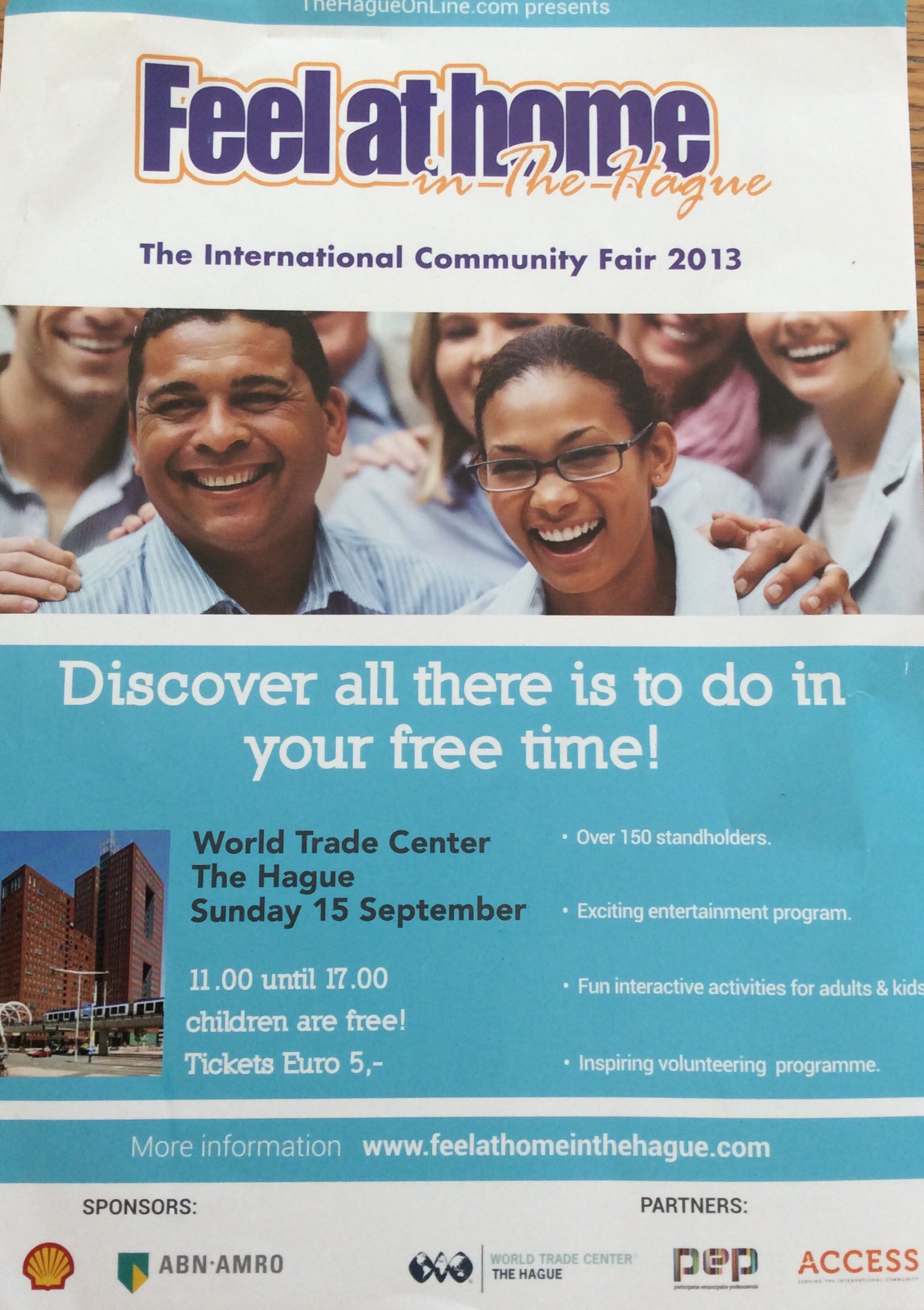 The largest expat fair in The Hague was held on Sunday 15th September, 2013 for its eighth edition. In a new location, the recently opened World Trade Center The Hague, the fair brought together thousands of internationals to help them feel more at home in The Hague.